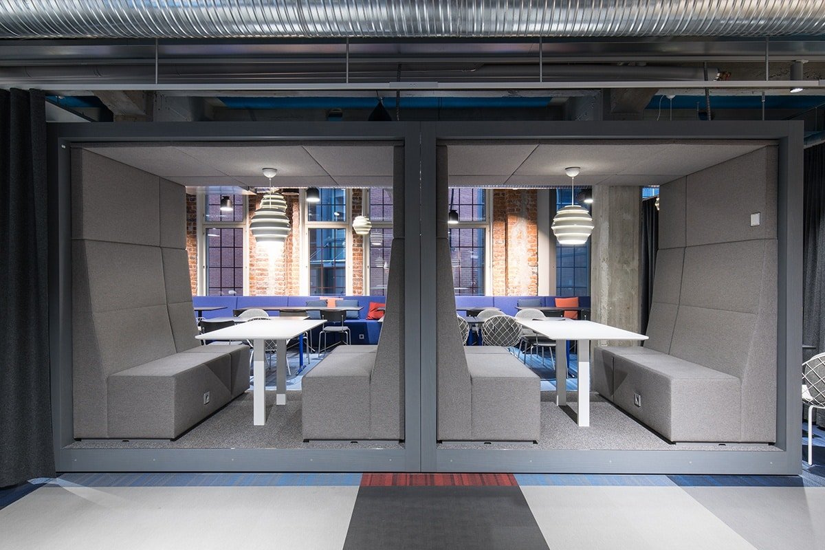 Ravintolalla on useita avoimia, puoli-avoimia ja suljettuja kohtaamistiloja.
