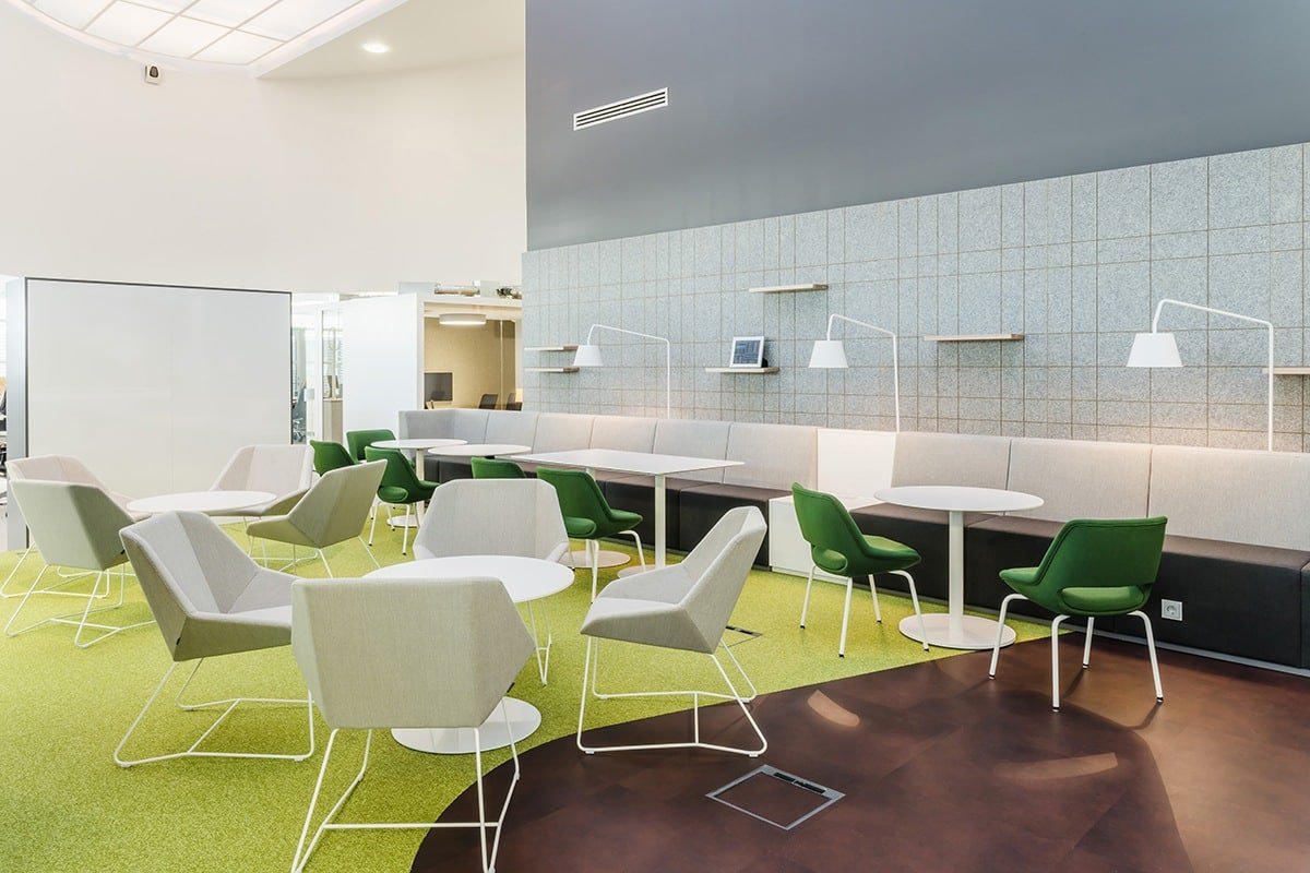 Espoon Keilaniemessä sijaitsevan Valmetin toimitilat muunnettiin INTO the Nordic Silence -kalusteilla muutosjoustavaksi ja eri työskentelytapoja tukevaksi monitilatoimistoksi. Keskittymisrauhaa voi hakea POD-työhuoneista, kun taas ryhmätyölle löytyy tiloja muun muassa POINT-sohvilta ja CUP-kalusteista. Sisustuksen hillitty vihreä väri vie ajatukset Valmetin toimialalle, metsään ja puihin, sekä täydentää korkeiden lasiseinien takana avautuvaa kaunista merinäköalaa.