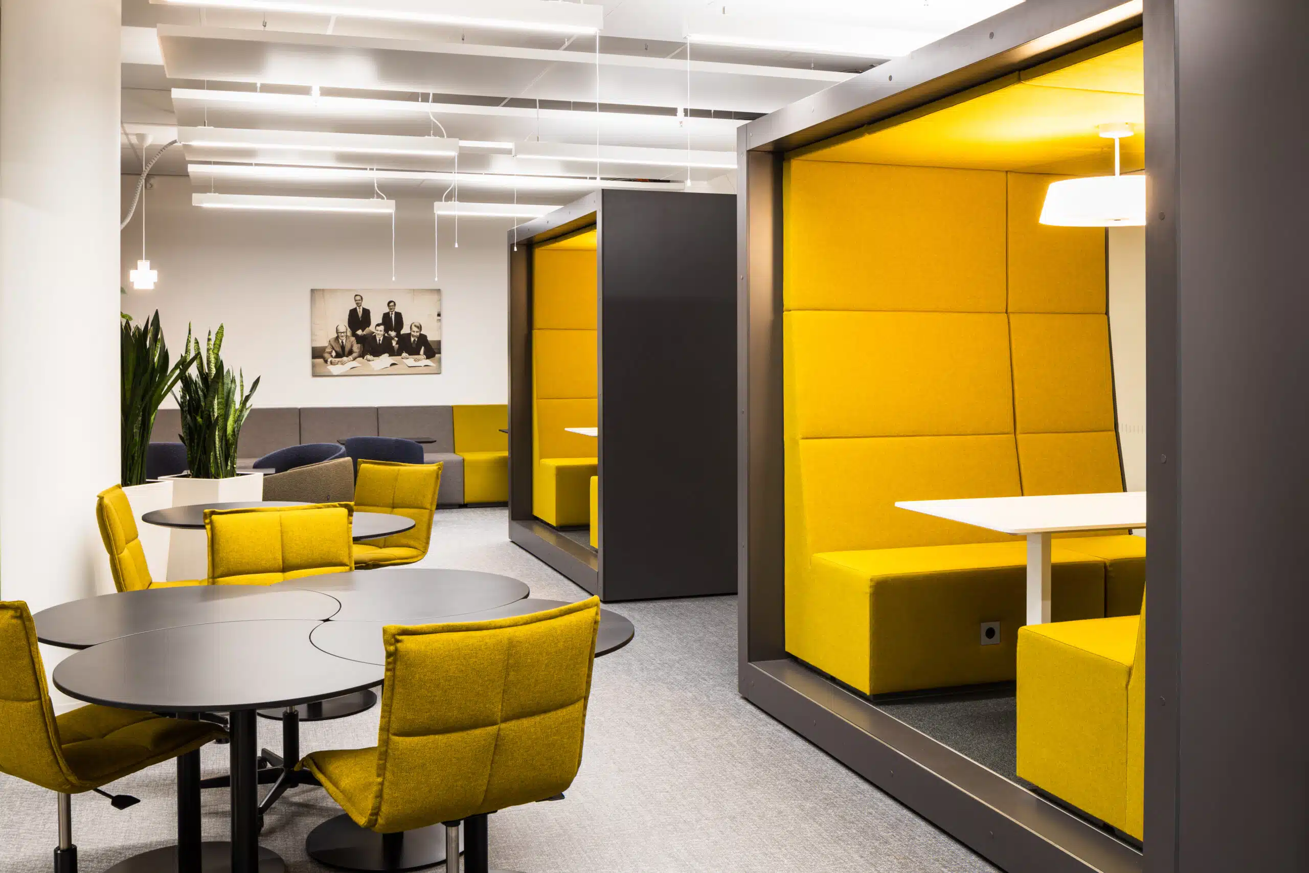 POD ROLL is a workspace for 2–4 people, ideal for spontaneous meetings, independent work, or use as a break area. Equipped with wheels, it can be easily moved and repositioned as spatial needs change.