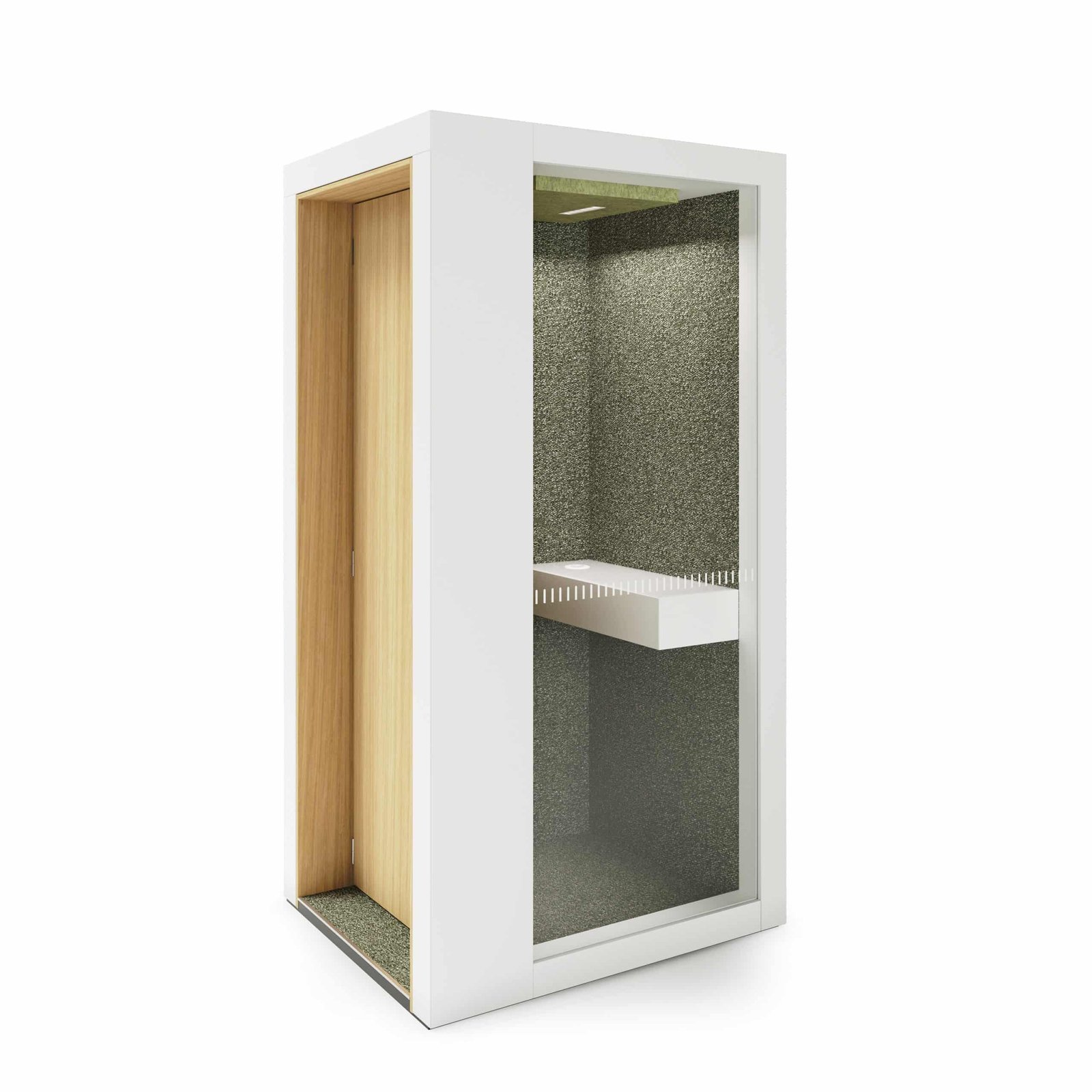 POD PHONE SMALL on yhden hengen äänieristetty puhelinkoppi, joka on suunniteltu parantamaan yksityisyyttä ja vähentämään häiriötekijöitä avotiloissa.