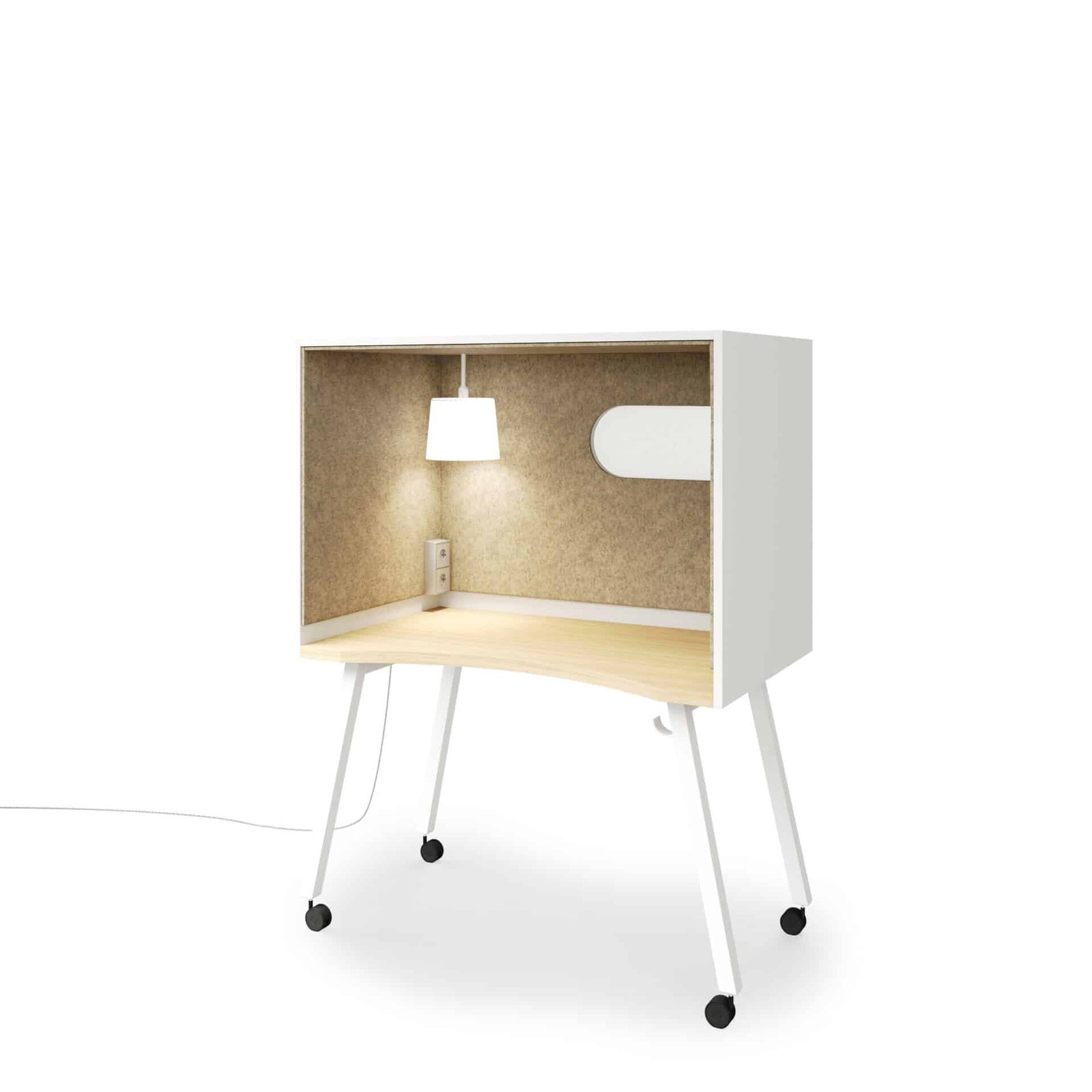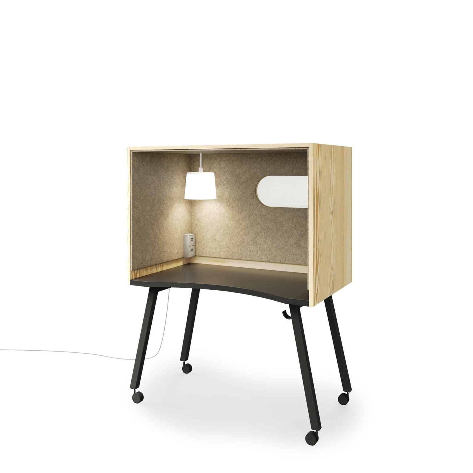 ROLL IN on akustinen työpiste pyörillä, joka tarjoaa paikan itsenäiseen keskittymistä vaativaan työskentelyyn työpaikalla tai kotona.