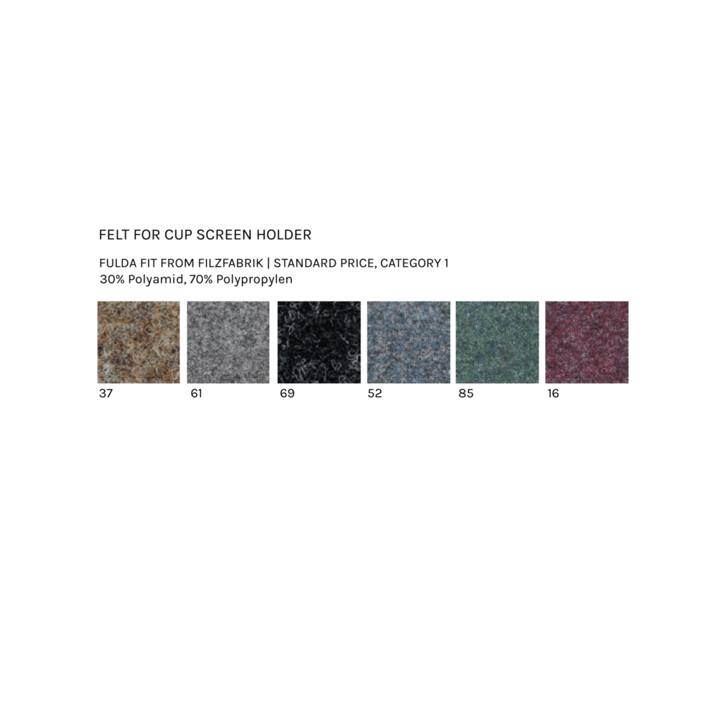 Kestävä ja tyylikäs – Suunniteltu vastuullisesti korkealaatuisesta akustisesta huovasta, saatavilla useissa väreissä.