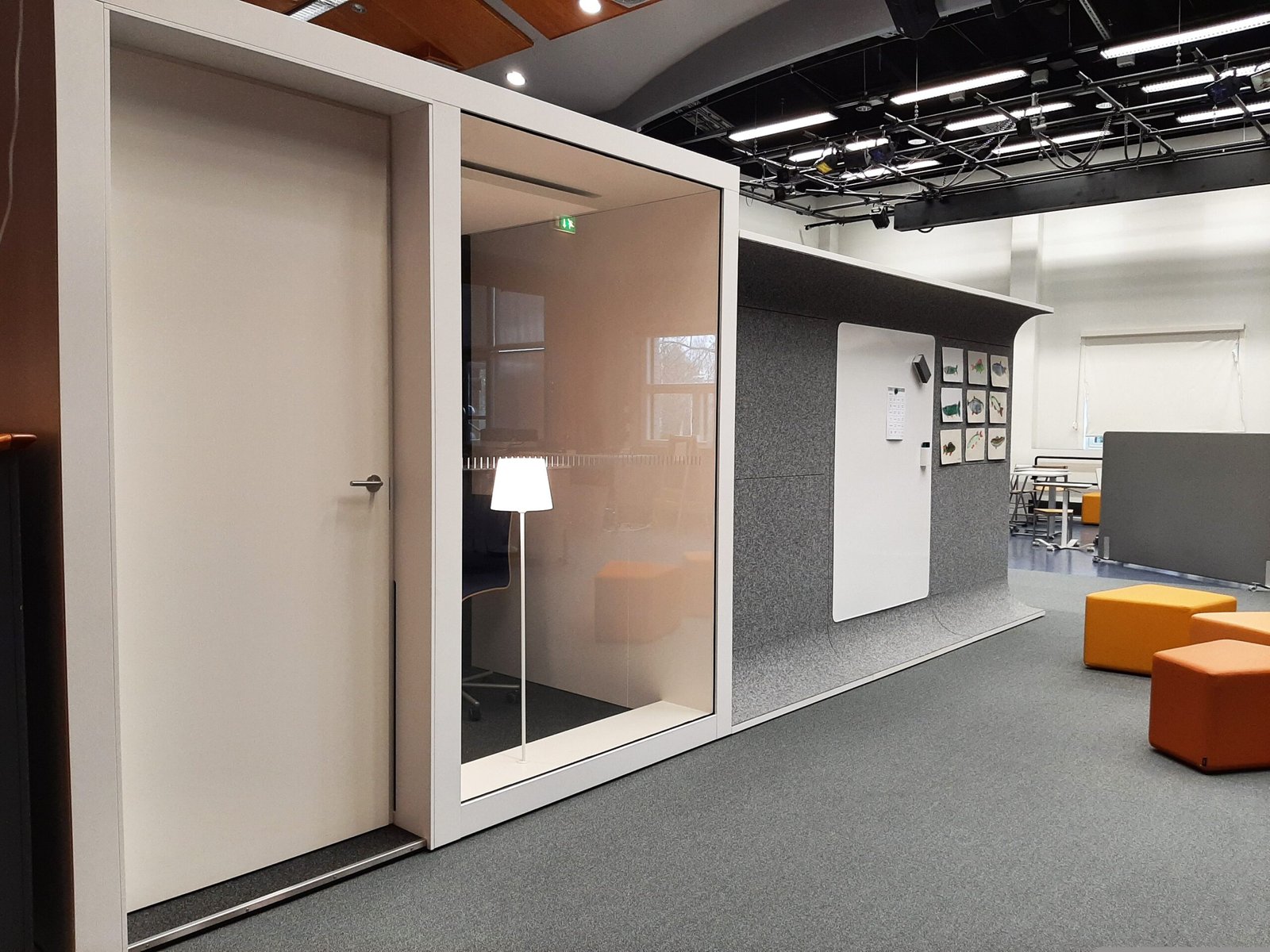 POD 2-huone tarjoaa isossa tilassa tarvittavaa työskentelyrauhaa ja yksityisyyttä. POD 2 -työtila antaa mahdollisuuden rauhalliseen hetkeen usein melko äänekkäässä ympäristössä.