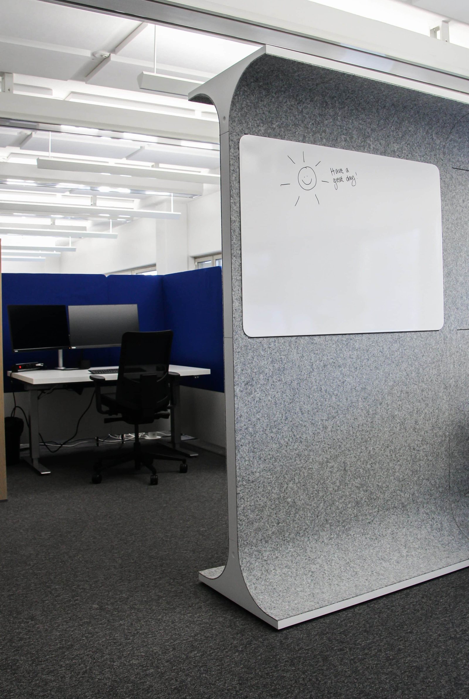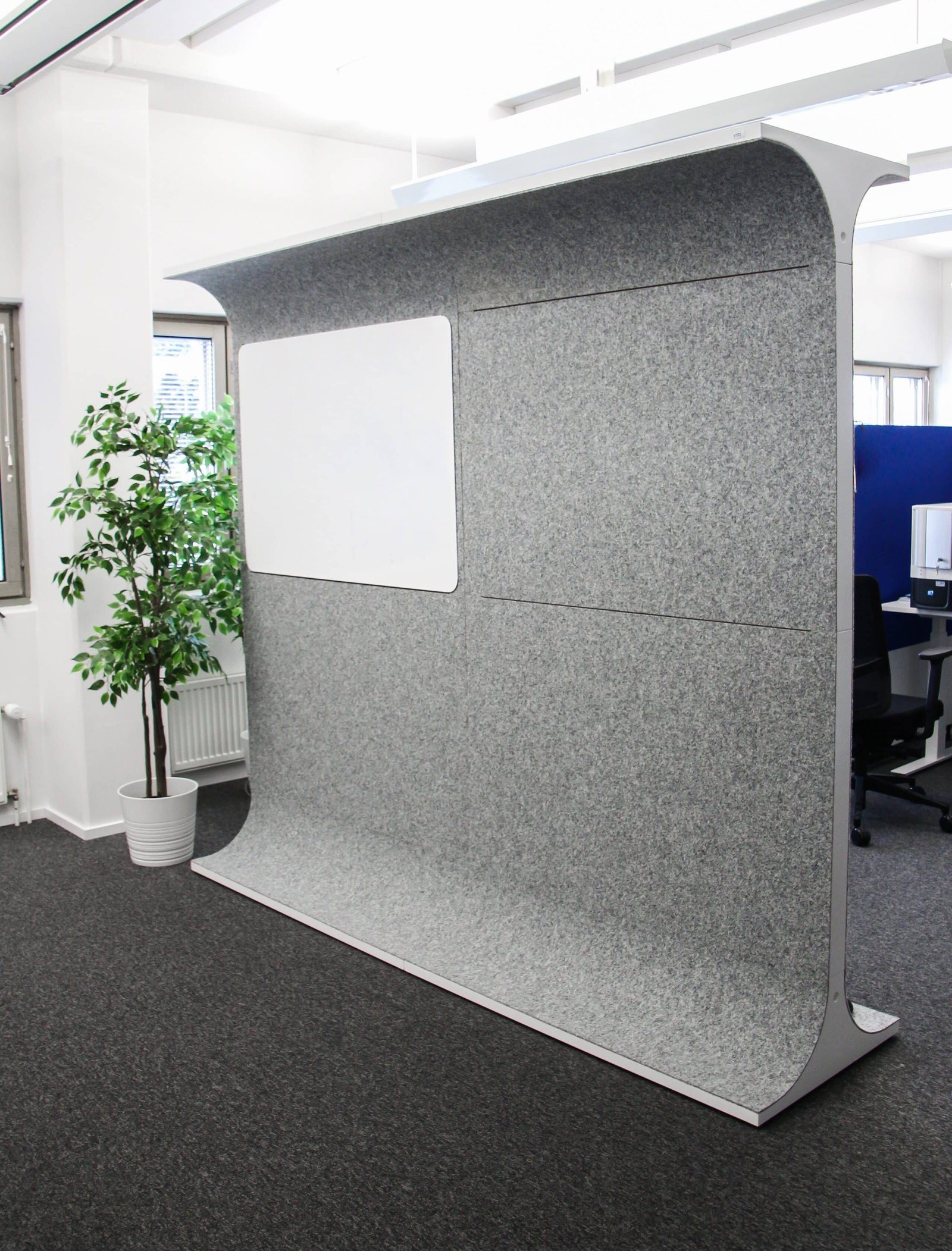 Siinä, missä puhelinkopeilla pyrittiin tuomaan tiloihin rauhaa ja tukea yksityiseen työskentelyyn, akustisilla STORY WALL tilanjakajilla pehmennettiin äänimaailmaa ja tarjottiin paremmat mahdollisuudet tiimityöskentelylle ja yhteisille suunnitelmille.